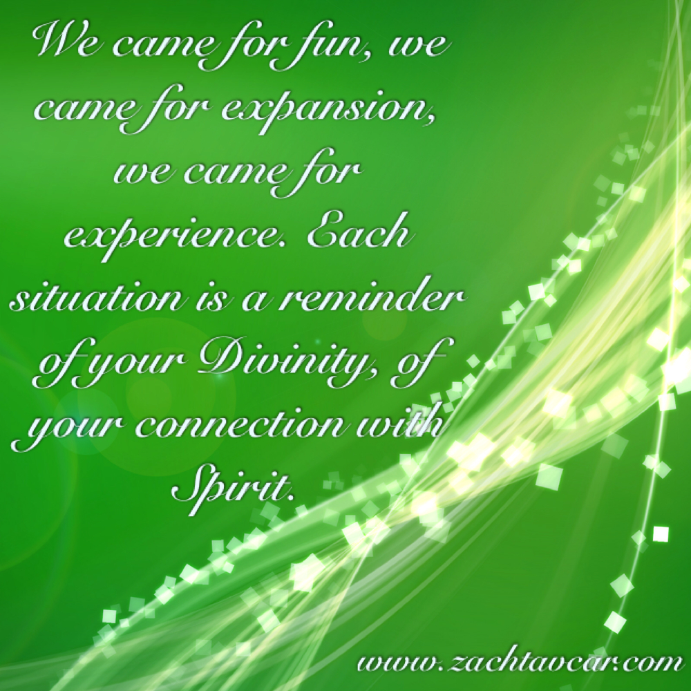 “We came for fun, we came for expansion, we came for experience. Each situation is a reminder of your Divinity, of your connection with Spirit.”