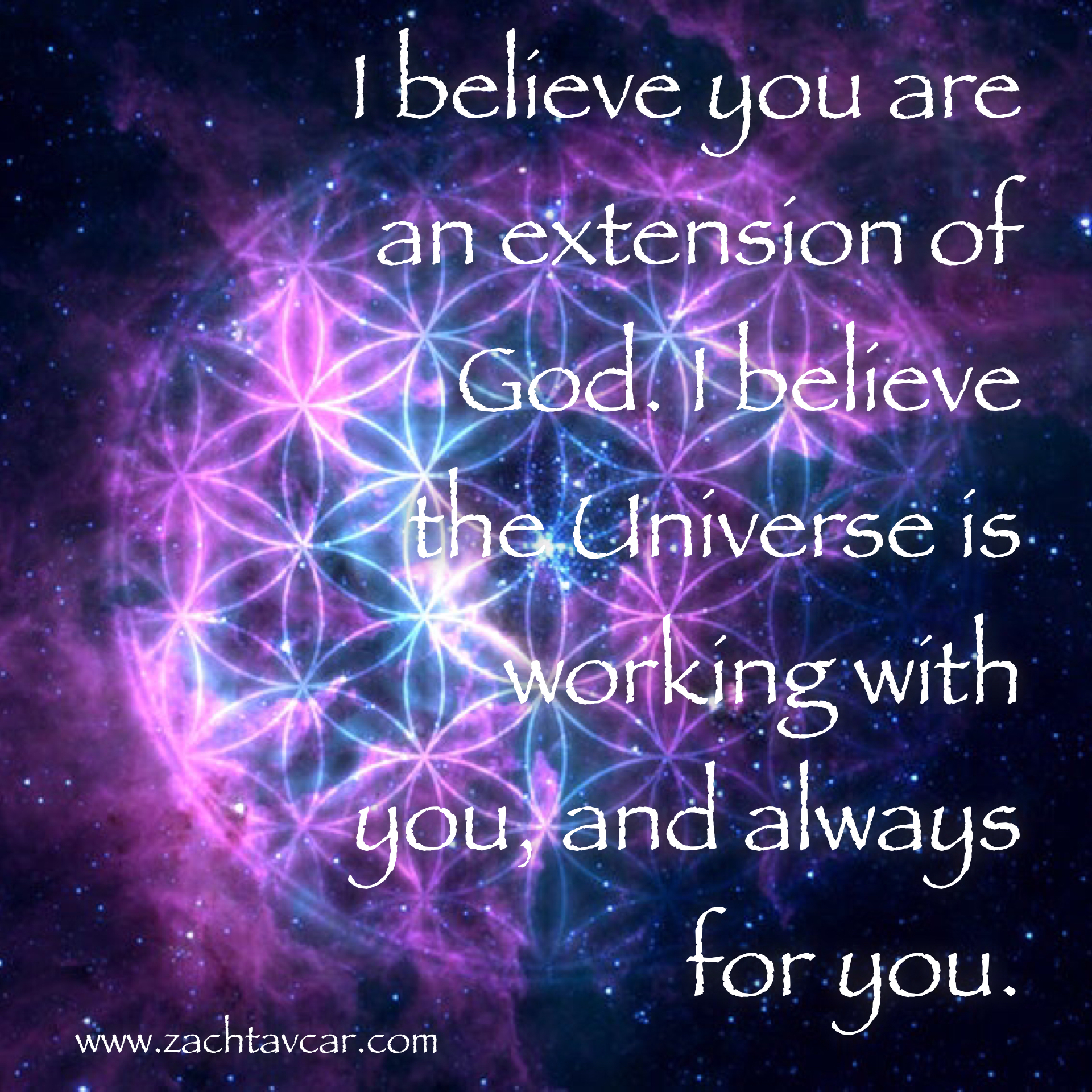 “I believe you are an extension of God. I believe that the Universe is working with you, and always for you.”